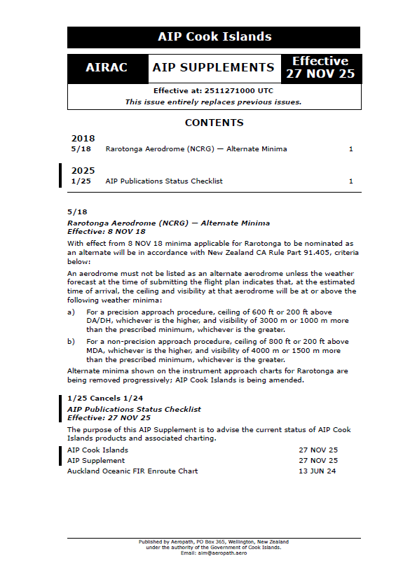 AIP Cook Islands Supplement - Digital Version only - Effective 27 November 2025