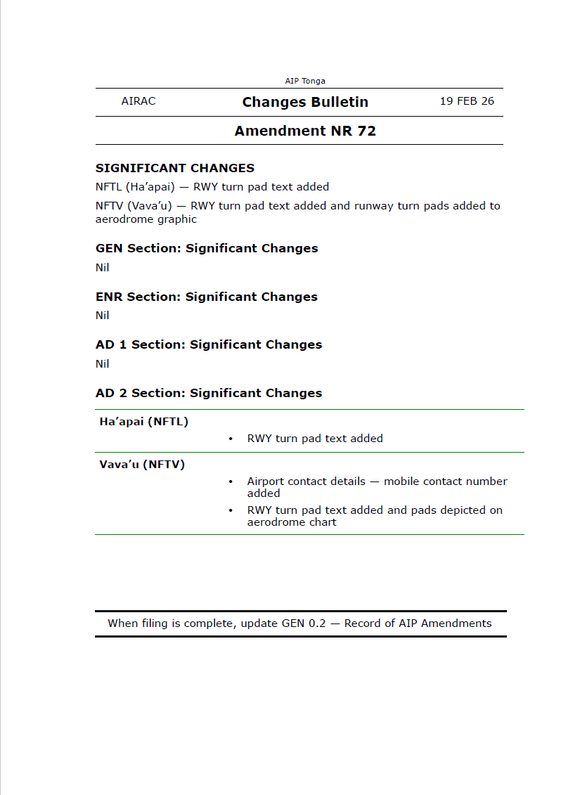 AIP Tonga Amendment NR 72 - Digital Version only - Effective 19 February 2026